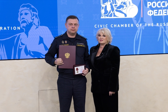 Накануне в Москве в Общественной палате Российской Федерации нашему коллеге -капитану внутренней службы Александру Чепурнову, заместителю начальника отделения оперативного дежурства УФССП России, вручена общественная медаль "За активную военно-патриотическую работу".